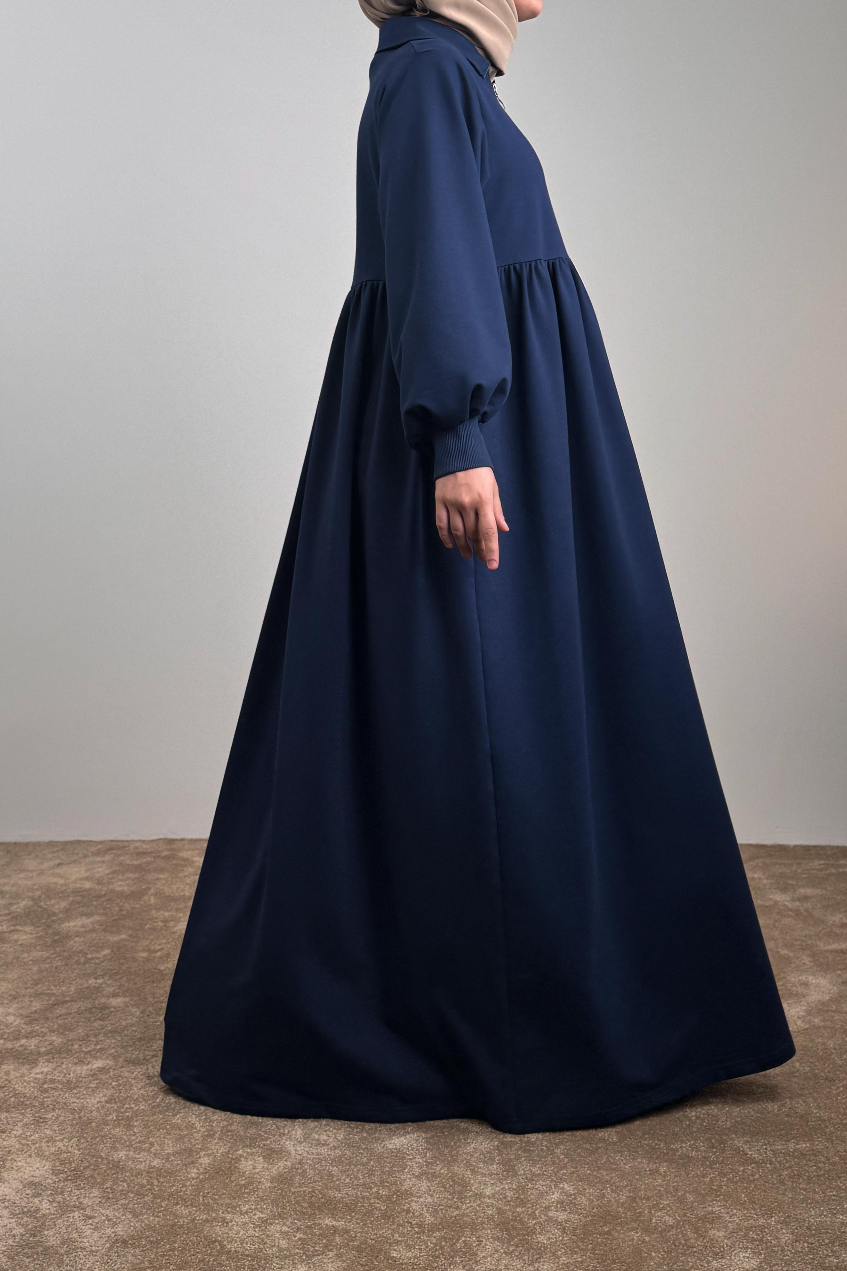 Ande Tesettür, Fermuar Yaka Sweat Elbise, Fermuar Yaka Sweat Elbise-Lacivert