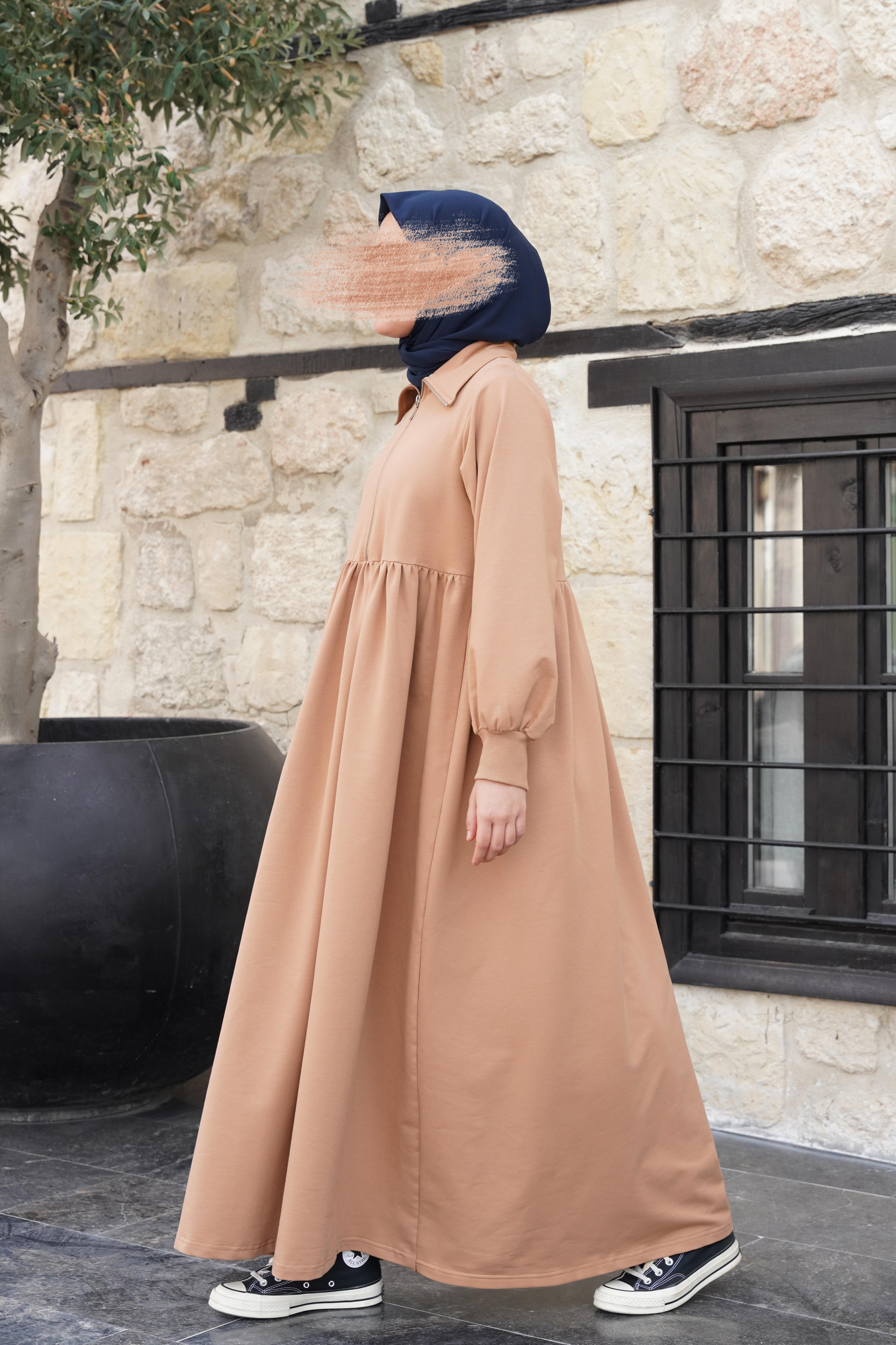 Ande Tesettür, Fermuar Yaka Sweat Elbise, Fermuar Yaka Sweat Elbise - Vizon