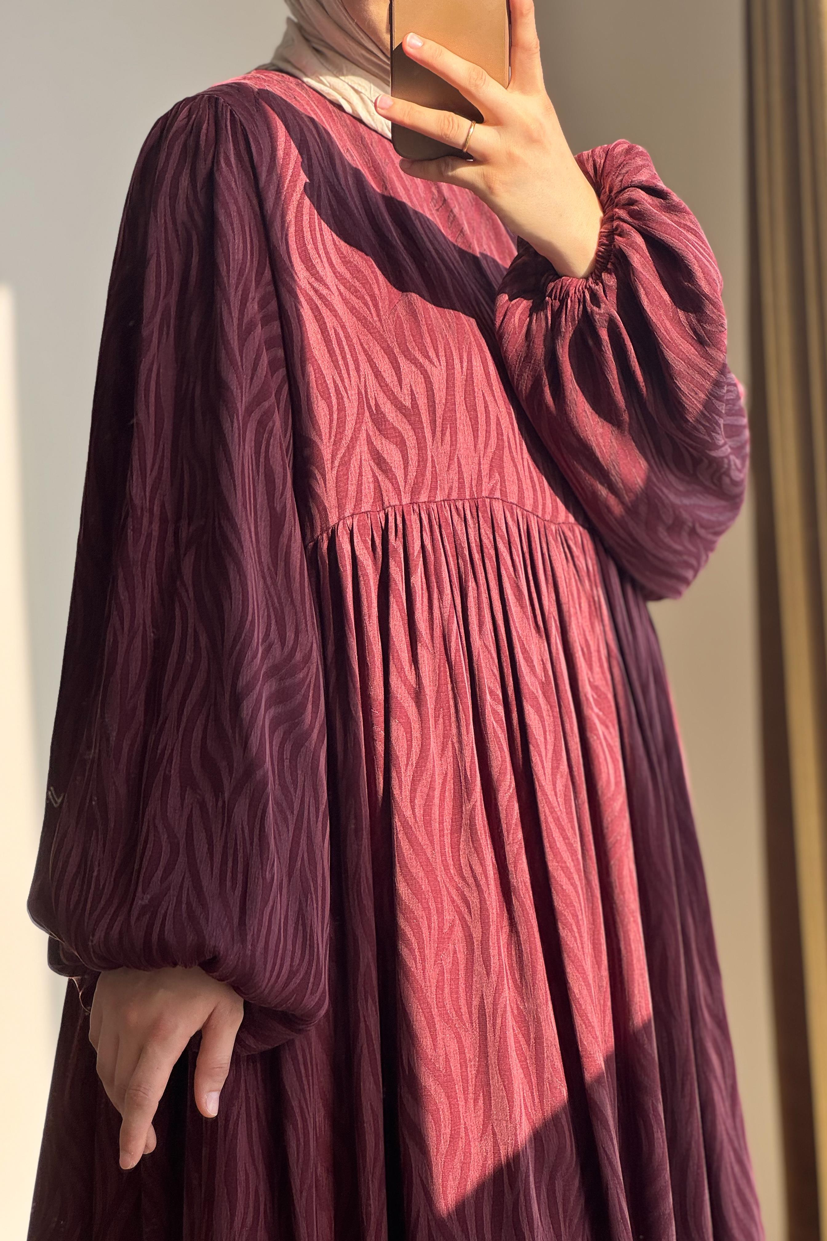 ANDE TESETTÜR, İpek Cupra Elbise, İpek Cupra Elbise - Bordo desen