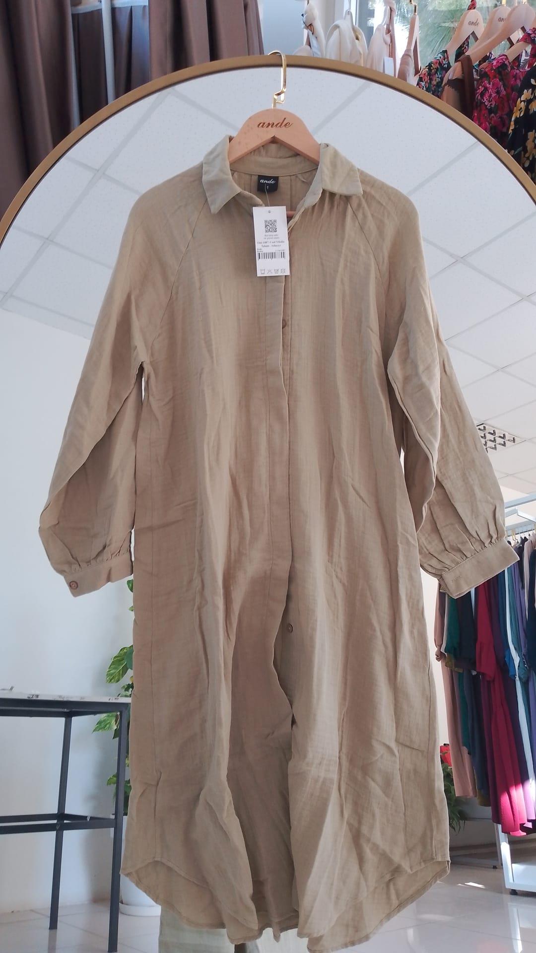 Cool Müslin Takım - Adaçayı; Pantolon sağ diz kapağında renk değişimi, gömlek alt kısında beyaz leke mevcut, boy 121 cm, gömlek leke boyu 90 cm, pantolon 70 cm.