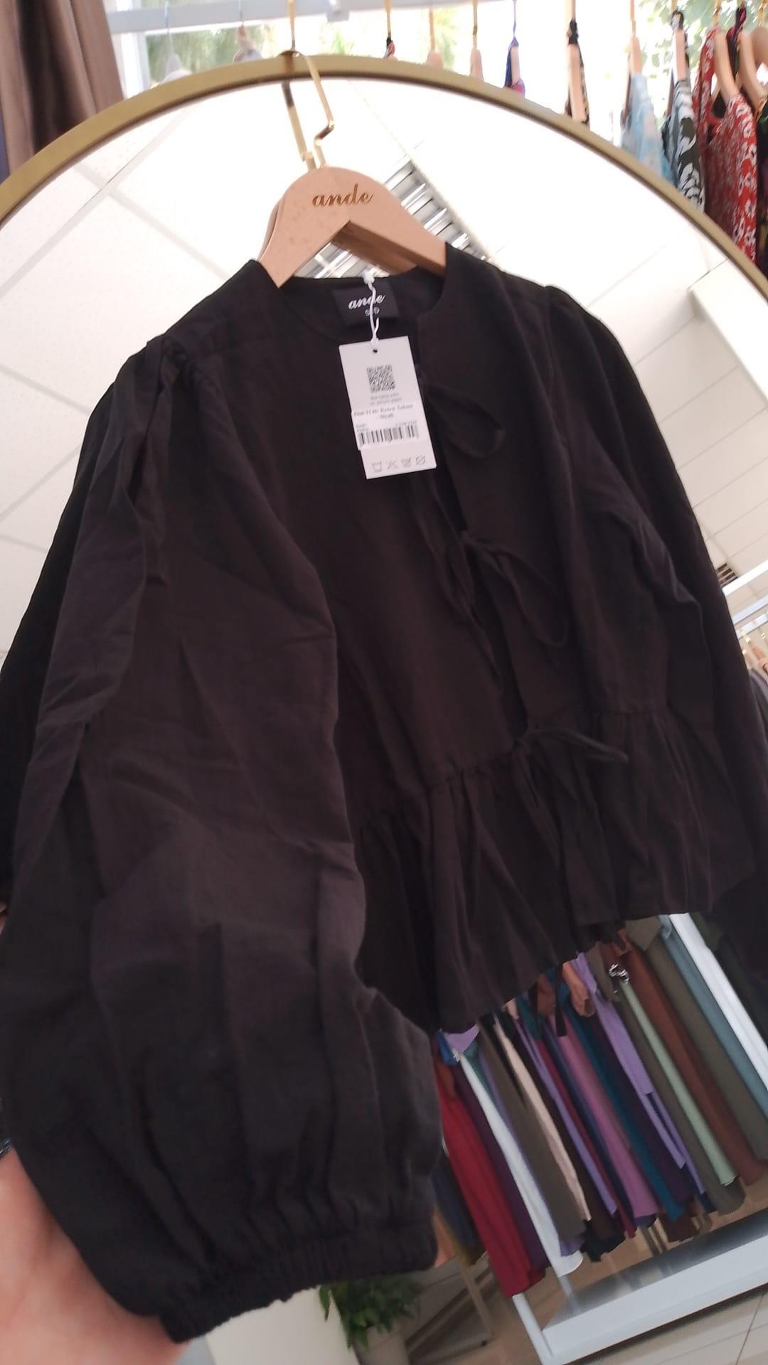 Keten Takım - Siyah; Cekette ve etekte leke var, ceket boy 54 cm, etek 97 cm, ceket lekesi 19-45 cm'de, etek lekesi 16-17 cm'de.