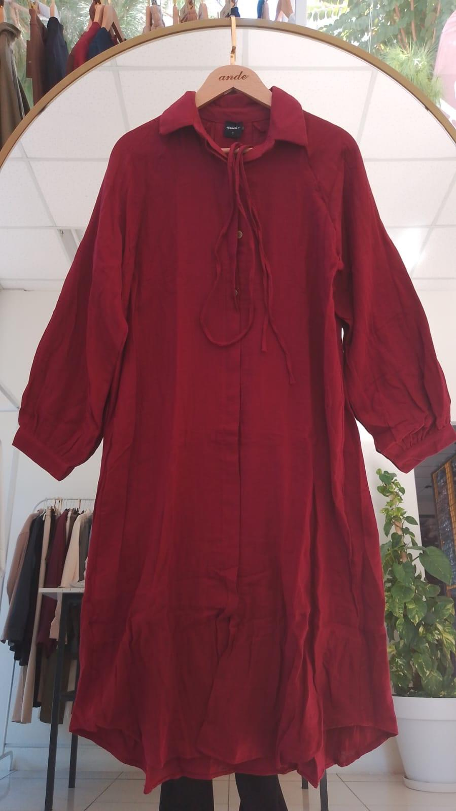 Cool Müslin Takım - Bordo 1B; Gömlek 126 cm, gömlek ön kısmında 35-50 cm arası ip çekmesi var, ip çekmesi 48 cm de.
