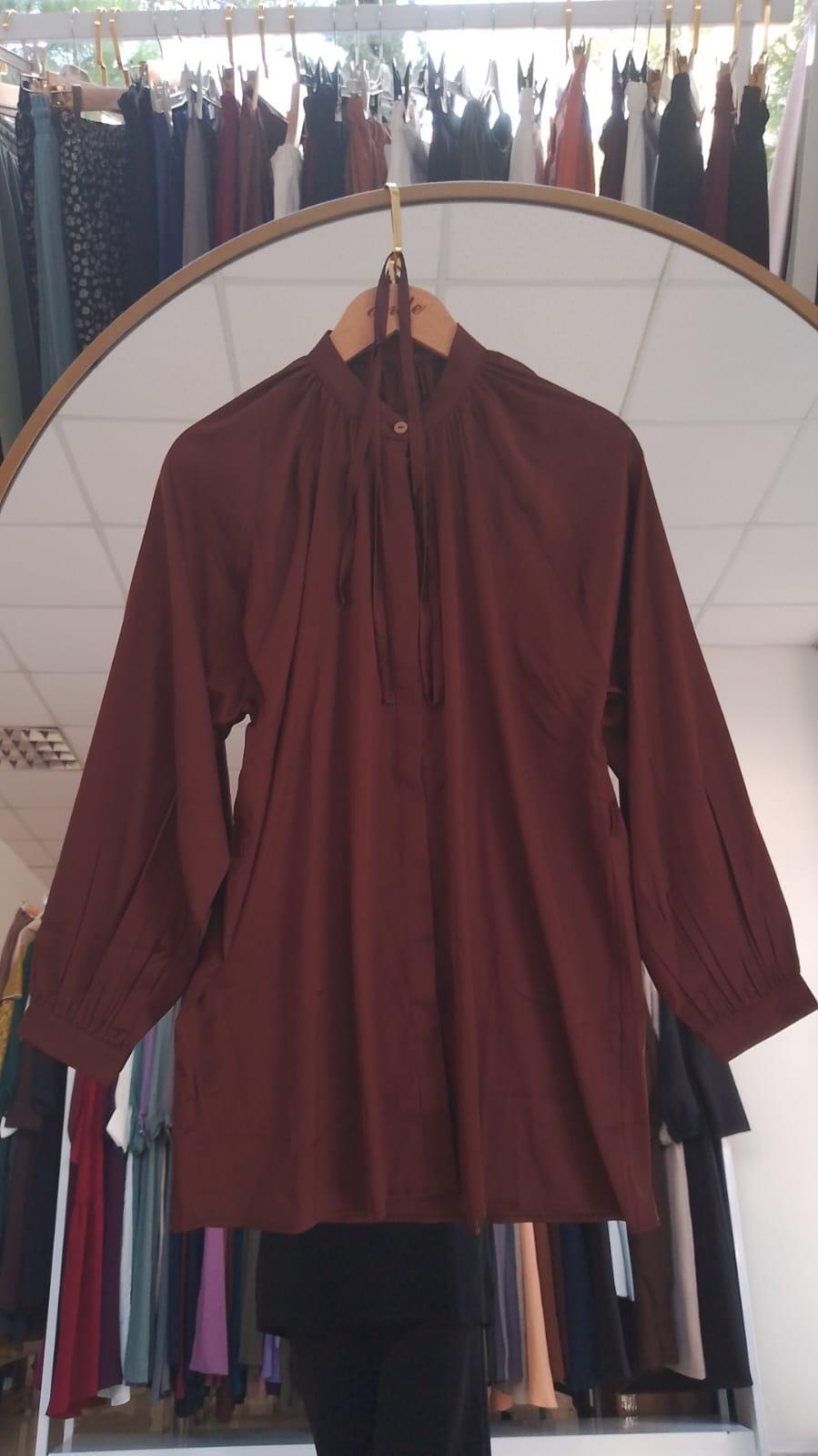 Ande Tesettür Outlet, Outlet, Out-1223/ Saten Gömlek - Acı kahve (numune)-
