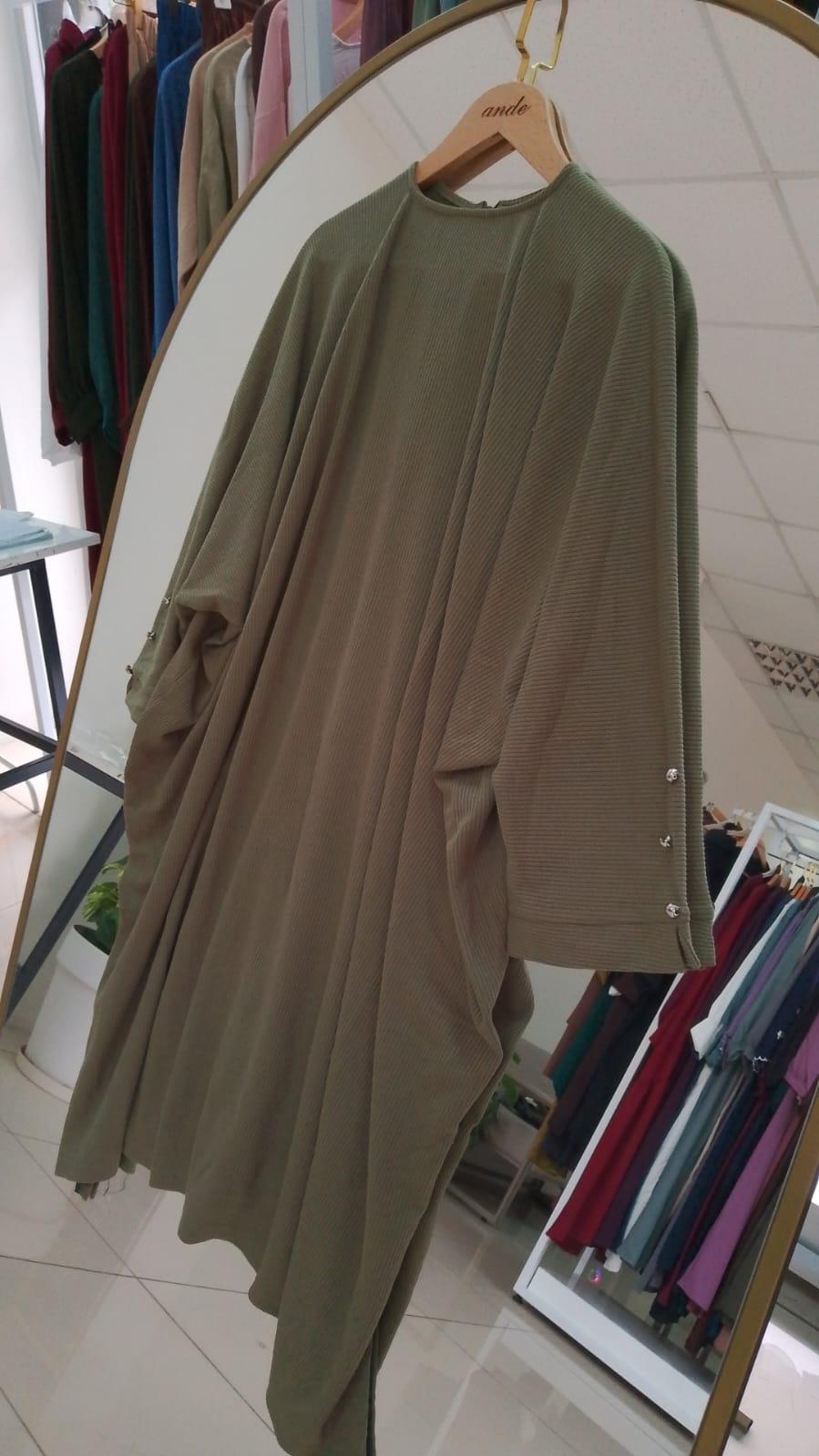 Yarasa Kol Triko Takım - Çağla yeşil (tekli numune ürün); Gömlek 108 cm, etek 94 cm, bel 46 cm.