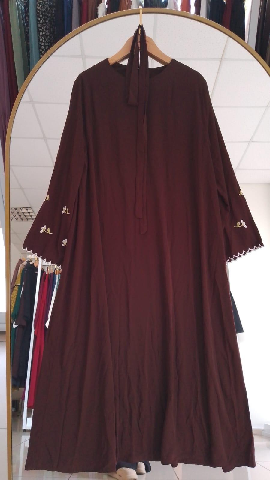 Ande Tesettür Outlet, Outlet, Out-1235/ Kardelen Nakışlı Elbise - Acı kahve-