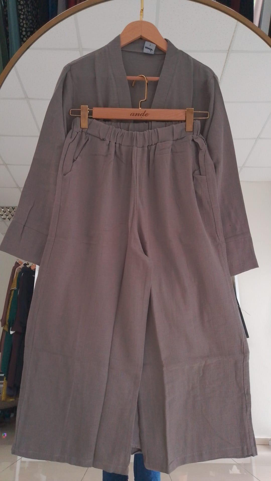 Ande Tesettür Outlet, Outlet, Out-1340/ Kimono Takım - Gri 1B-