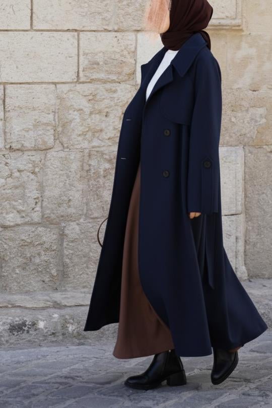 Rüzgarlıklı Kruvaze Kaban - Lacivert