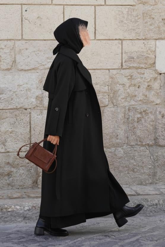 Rüzgarlıklı Kruvaze Kaban - Siyah