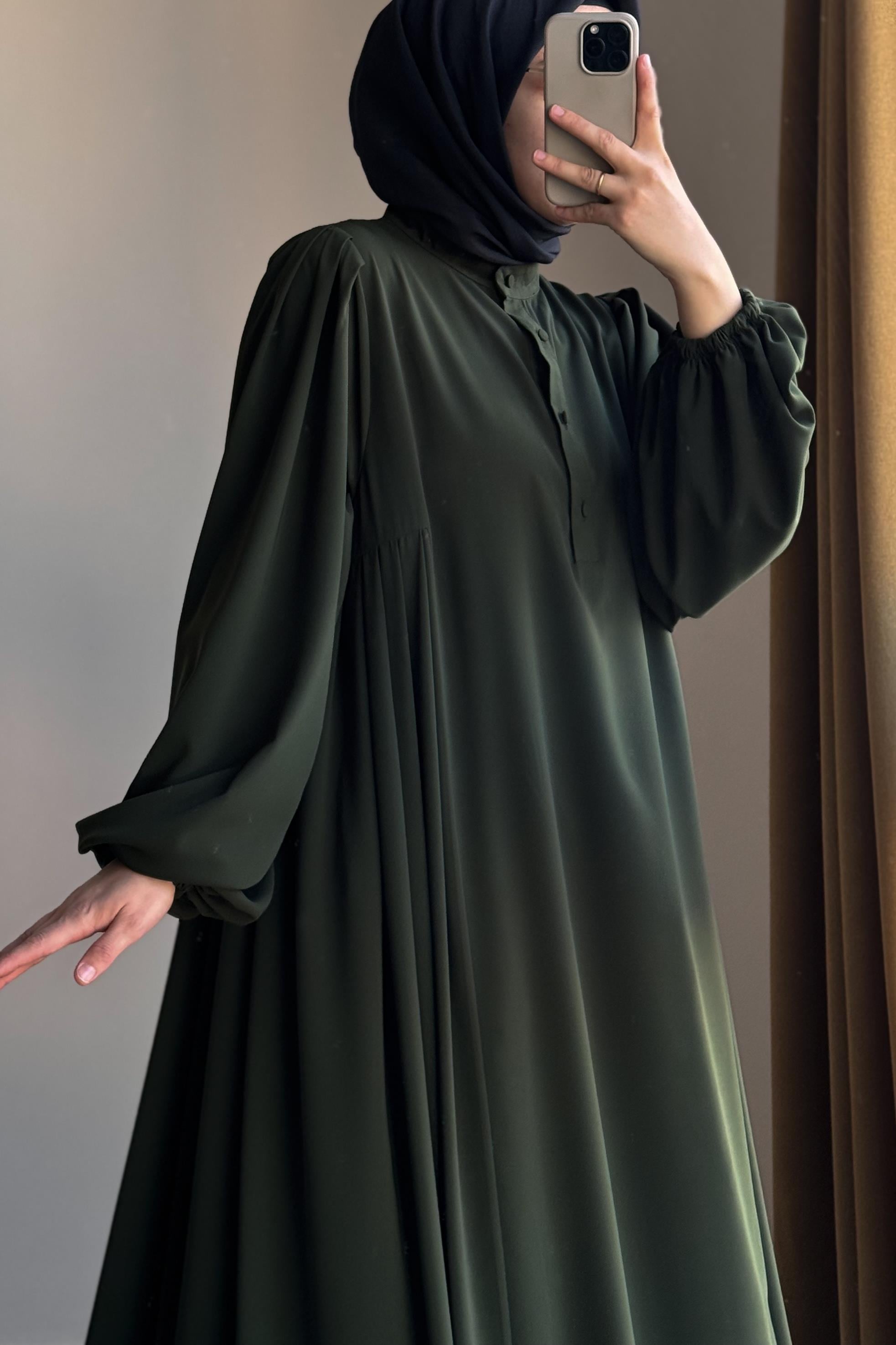 Ön kısmı göğüs altına kadar düğme detaylıdır