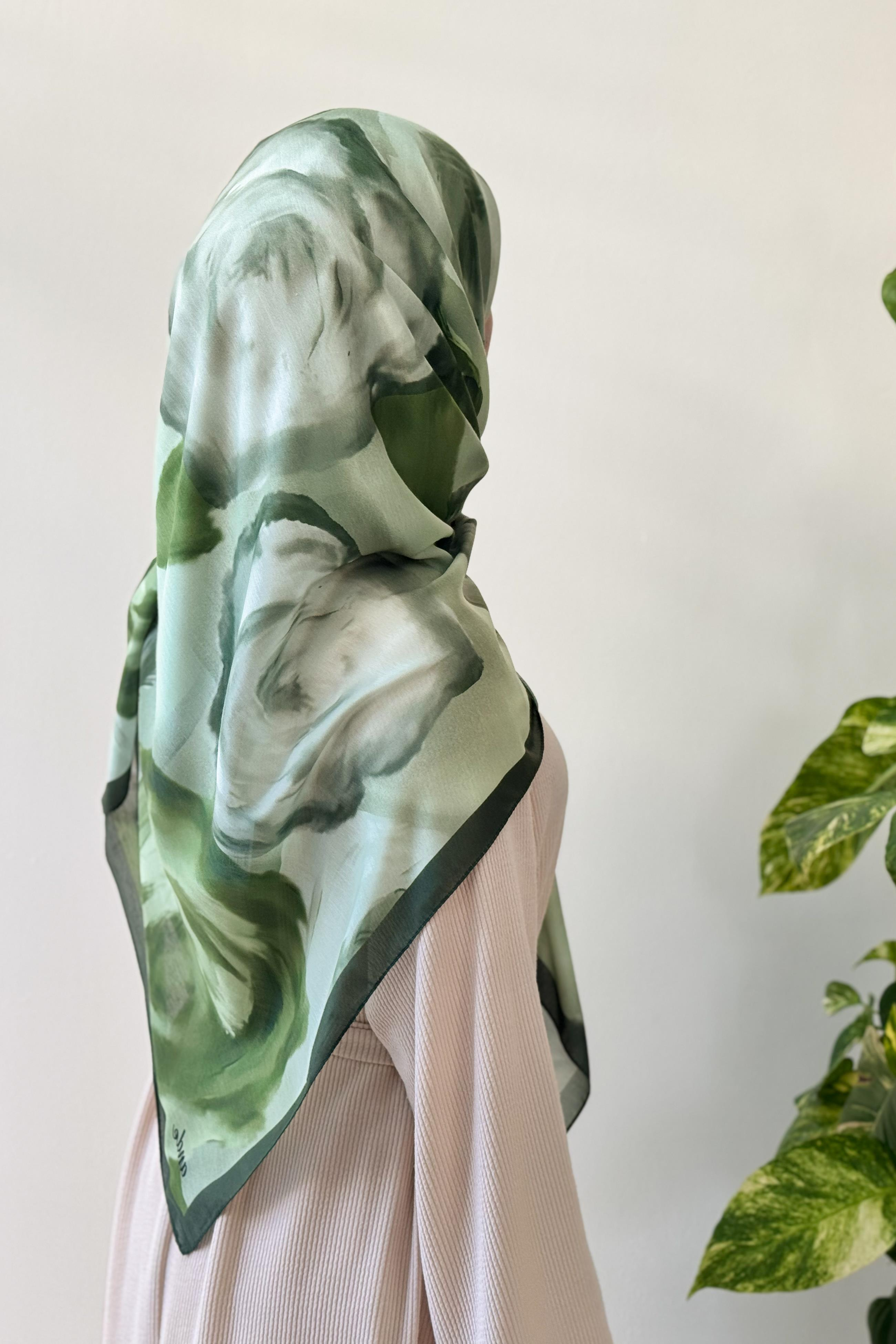Ande Tesettür, Soft Rose Desen Pamuk Eşarp, Soft Rose Desen Pamuk Eşarp-Yaprak yeşil