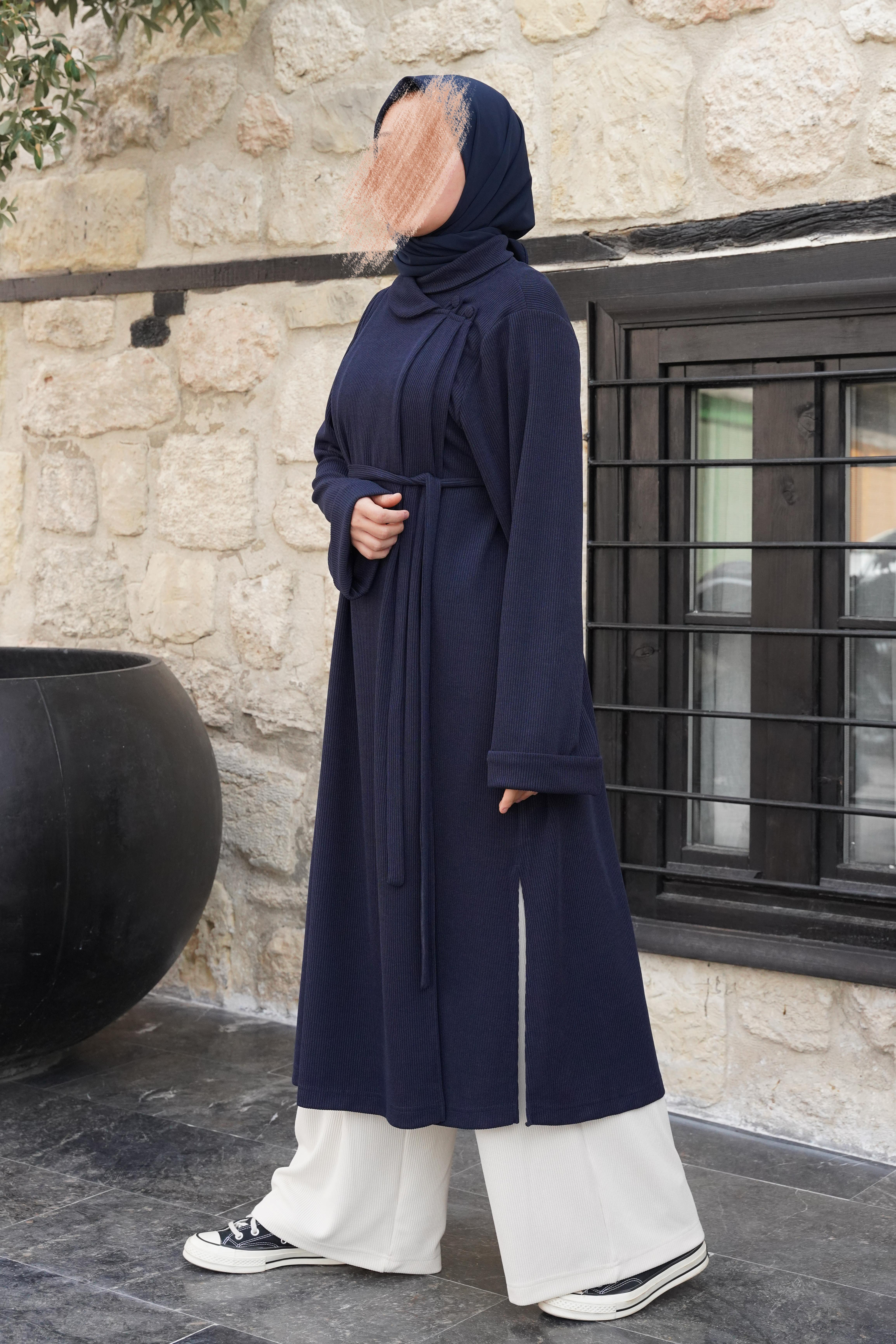 Omuz Tuturmalı Triko Tunik - Lacivert