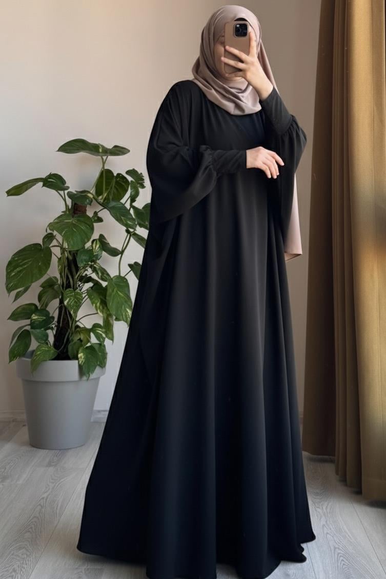 Ande Tesettür, Yarasa Kol Elbise/Ferce, Yarasa Kol Elbise/Ferce-Siyah